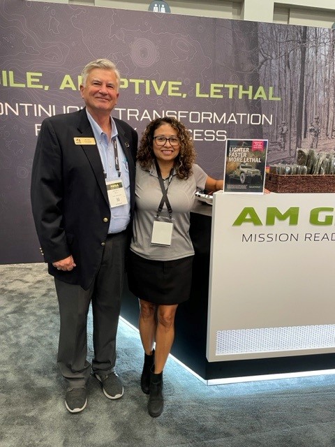Bill Bell, SVP, Fox Associates; visits with Deborah Reyes, Senior Director, Global Marketing & Strategic Communication for AM General at the AUSA Annual Conference in Washington, D.C.