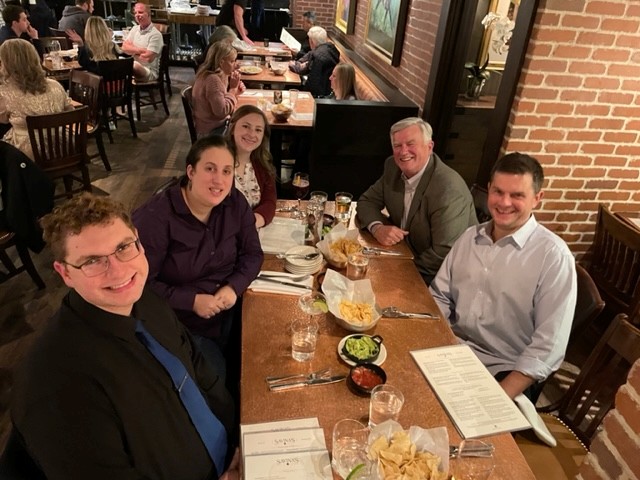 (L-R): David Teodosio, Digital Manger, International Association of Chiefs of Police; Danielle Gudakunst, Managing Editor, Police Chief Magazine; and Camryn Nethken, Editor, Police Chief Magazine; enjoy dinner with Fox Associates’ Bill Bell and Patrick Carriglio, during the IACP Annual Conference in Denver.